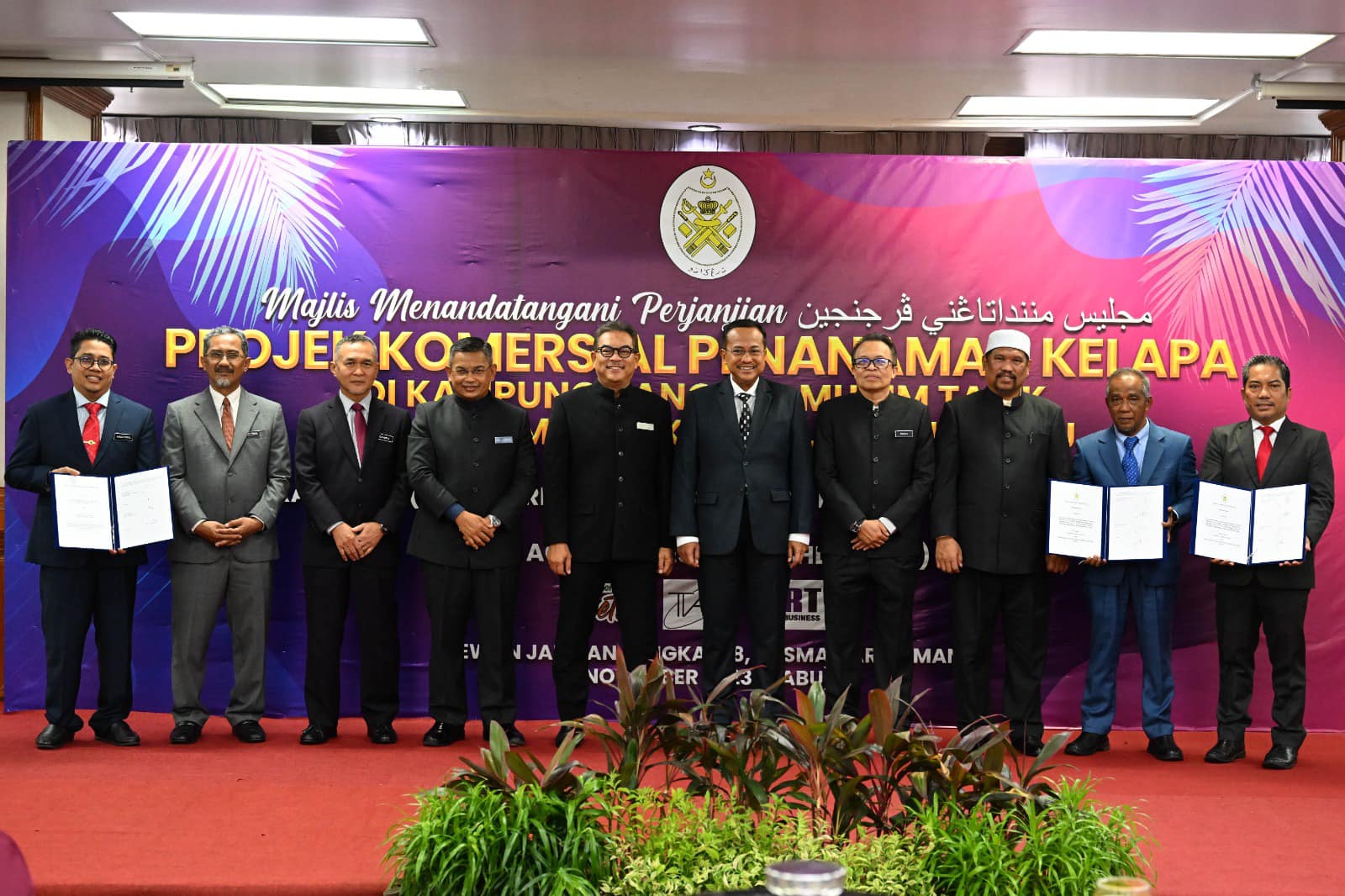 Majlis Menandatangi Perjanjian antara Pejabat Daerah Setiu (PDS), Terengganu Agrotech Development Corp Sdn Bhd (TADC) & LRT Agribusiness Sdn Bhd (LRTA) bagi Projek Komersial Penanaman Kelapa di Kampung Banggol, Setiu, Terengganu.